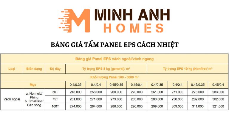 - Tấm Panel EPS cách nhiệt hiện đang được bán với giá 160.000 VNĐ/ tấm đối với vách trong/ vách đứng, từ 248.000 VNĐ đối với vách ngoài/vách ngang.