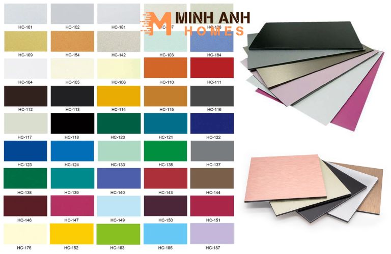| Cấu tạo | 2 lớp nhôm mỏng + lõi polyethylene (PE) hoặc mineral core (MC) |