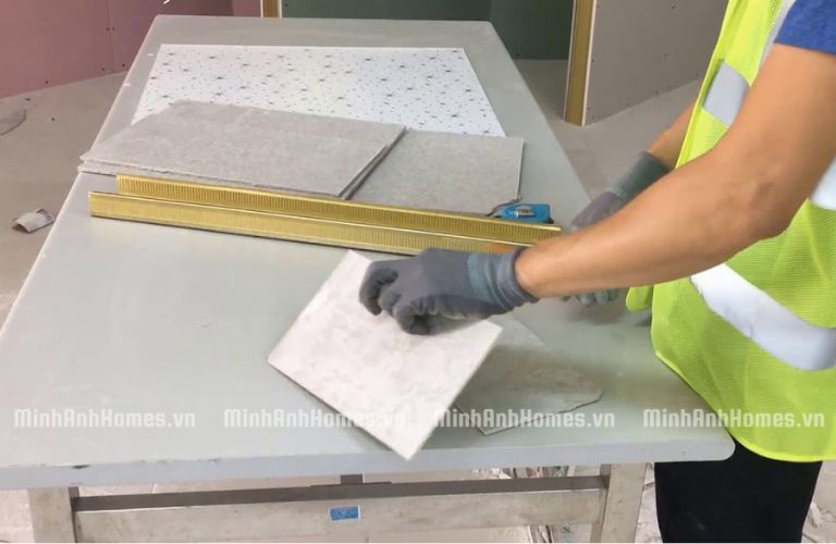 - Để khe hở giữa các tấm: Rất quan trọng! Luôn để một khe hở nhỏ khoảng 2mm – 3mm giữa các cạnh tấm. Khe hở này cho phép tấm giãn nở tự nhiên theo nhiệt độ và độ ẩm, tránh hiện tượng nứt mối nối sau này.